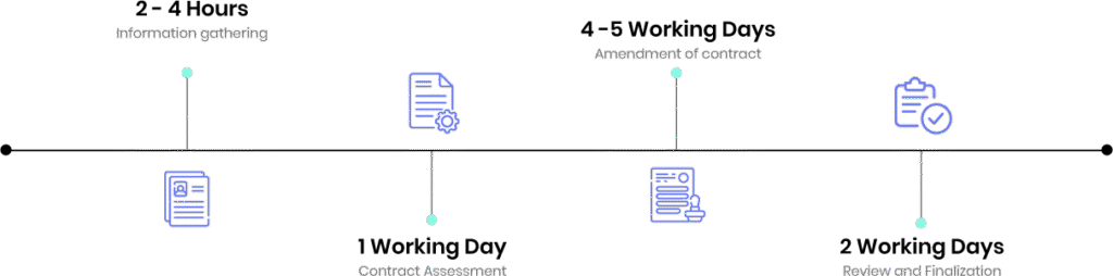 Finalization : The agreement/contract is finalized after necessary iterations and the timeline can also be appreciated, the time required for contract vetting depends primarily on the complexities of the subject matter covered. Nevertheless, on average, we finish the process within 7 to 10 working days.