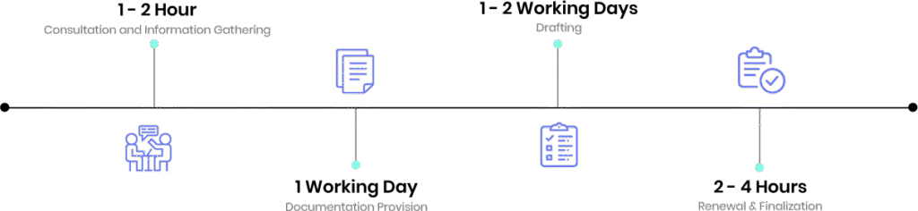 Consultation : The first step is to consult the customer with our team and to share brief information about the matter.